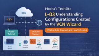 検証ログL-03 VCN Wizardで作った構成を読み解く OCIのVCN Wizardを使って作成したネットワーク構成を読み解きます。VCN、Subnet、Route Table、Security Listなど、作成された各リソースの役割を確認しながら、構成の見方を整理します。 2026.03.04検証ログ